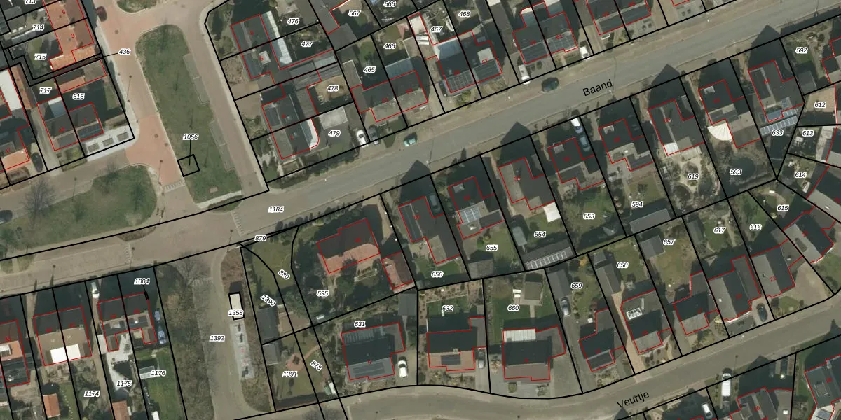 Het perceel waarop Baand 50 staat heeft een oppervlakte van 327 m². Dit is een groot perceel. De perceeloppervlakte wordt geregistreerd door het Kadaster. Gedetailleerde informatie over de maten van dit perceel kunt u vinden in het rapport Kadastrale kaart met maatvoering van Baand 50.