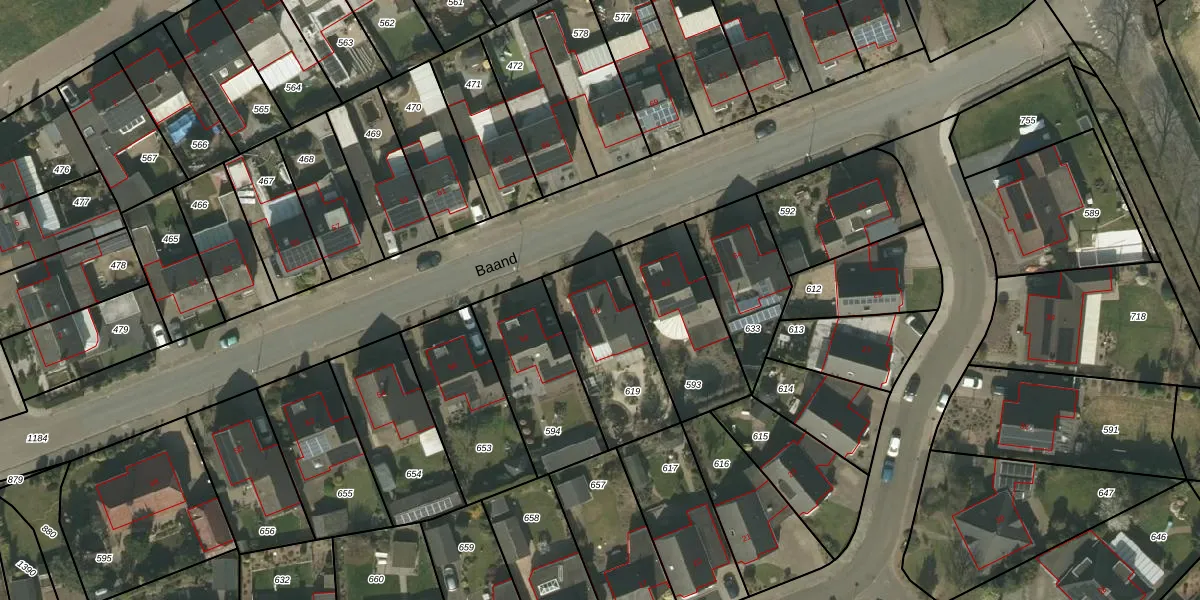 Het perceel waarop Baand 60 staat heeft een oppervlakte van 397 m². Dit is een groot perceel. De perceeloppervlakte wordt geregistreerd door het Kadaster. Gedetailleerde informatie over de maten van dit perceel kunt u vinden in het rapport Kadastrale kaart met maatvoering van Baand 60.