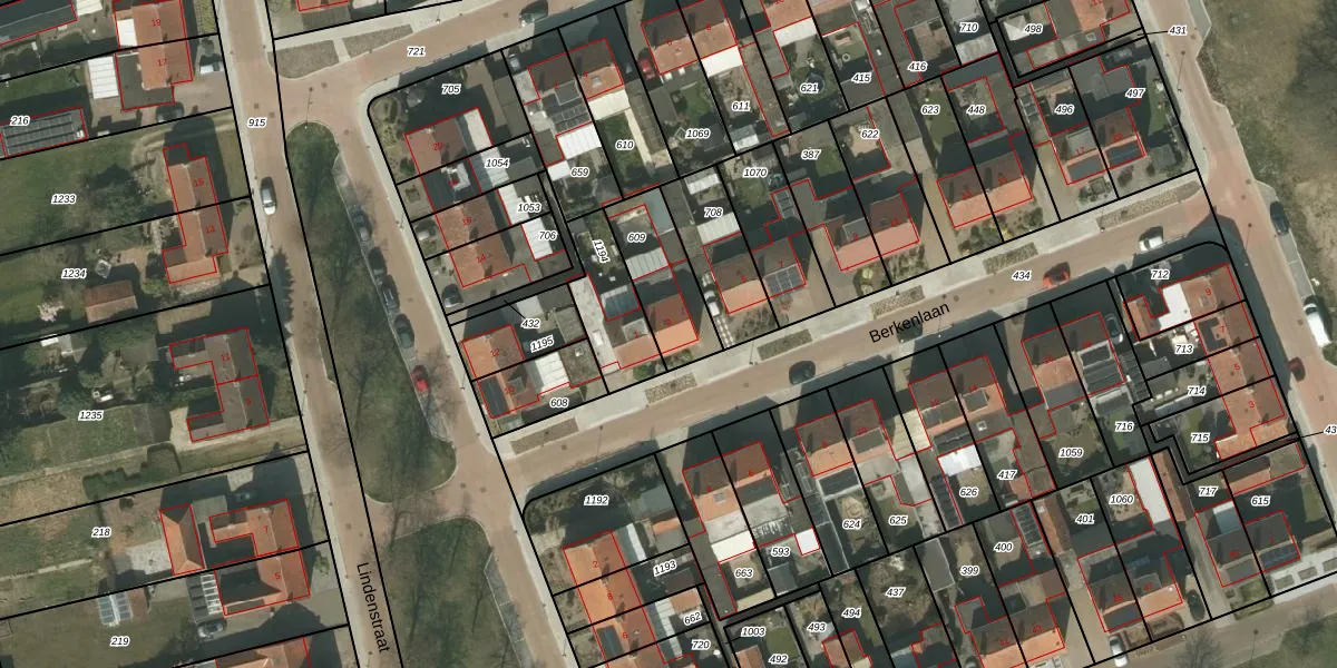 Gebruik de zoekbalk of klik op een perceel voor informatie over de adressen binnen dit perceel.
