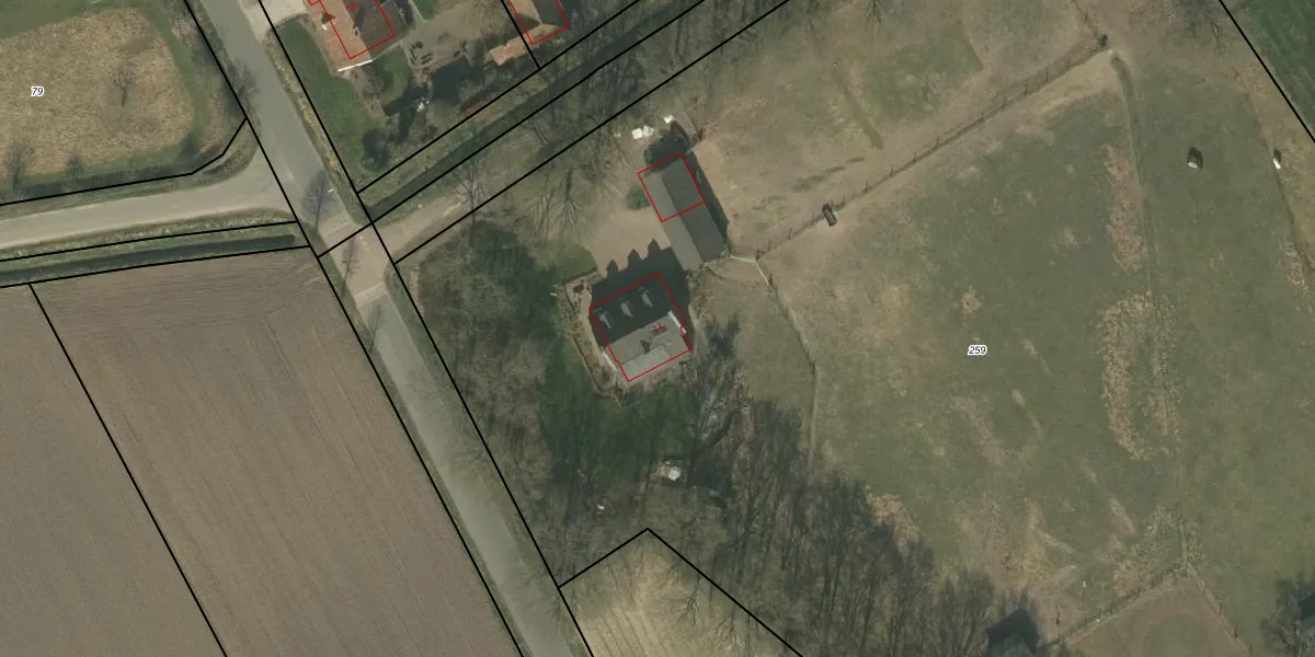 Het perceel waarop Dries 14 staat heeft een oppervlakte van 1,5 ha. Dit is een zeer groot perceel. De perceeloppervlakte wordt geregistreerd door het Kadaster. Gedetailleerde informatie over de maten van dit perceel kunt u vinden in het rapport Kadastrale kaart met maatvoering van Dries 14.