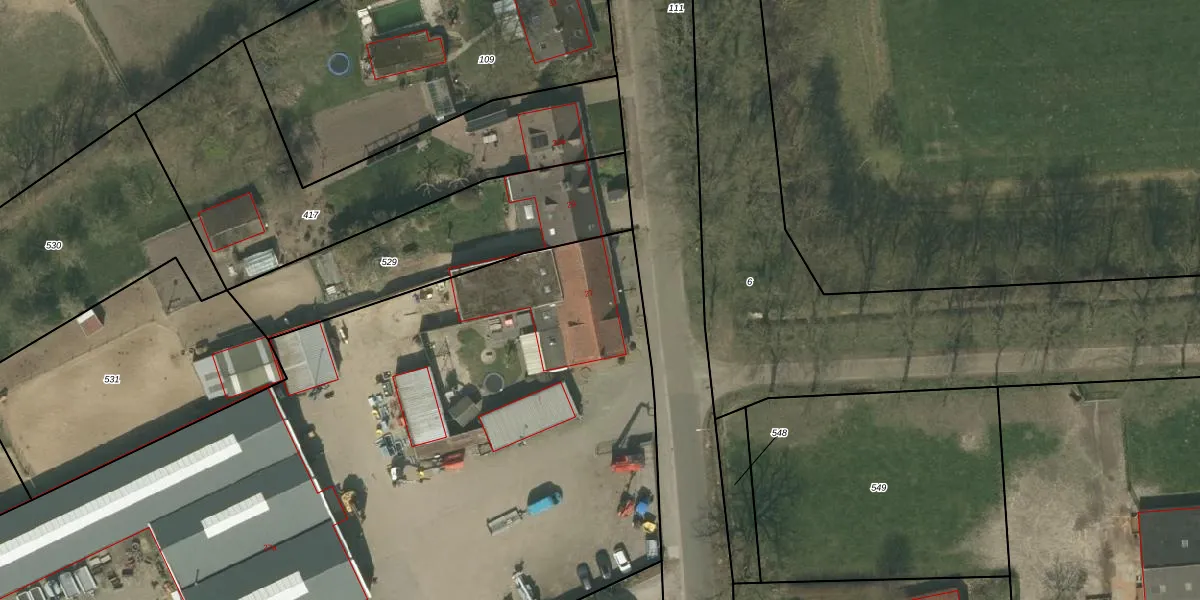 Het perceel waarop Dries 27 staat heeft een oppervlakte van 1,1 ha. Dit is een zeer groot perceel. De perceeloppervlakte wordt geregistreerd door het Kadaster. Gedetailleerde informatie over de maten van dit perceel kunt u vinden in het rapport Kadastrale kaart met maatvoering van Dries 27.