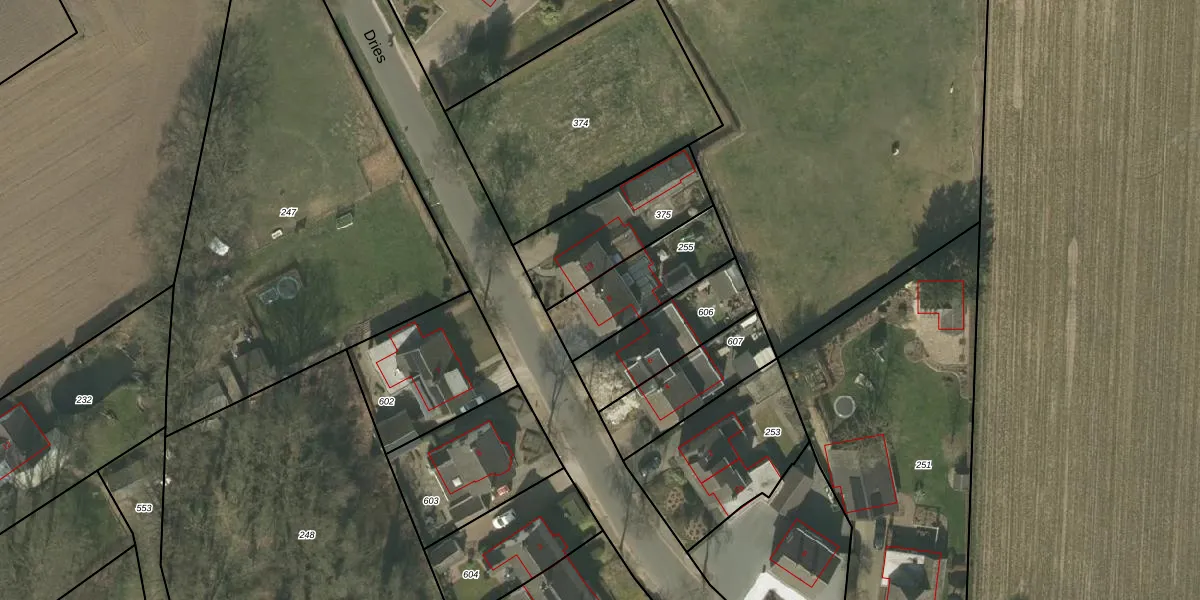 Het perceel waarop Dries 8 staat heeft een oppervlakte van 315 m². Dit is een groot perceel. De perceeloppervlakte wordt geregistreerd door het Kadaster. Gedetailleerde informatie over de maten van dit perceel kunt u vinden in het rapport Kadastrale kaart met maatvoering van Dries 8.