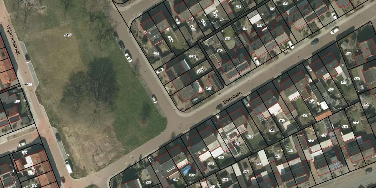 Eikenlaan 1 is gelegen op kadastraal perceel NEE00L652. Deze kadastrale aanduiding is uniek en wordt gebruikt door het Kadaster om eigendomsrechten en andere zakelijke rechten vast te leggen. Het perceel maakt onderdeel uit van de kadastrale gemeente Neer.