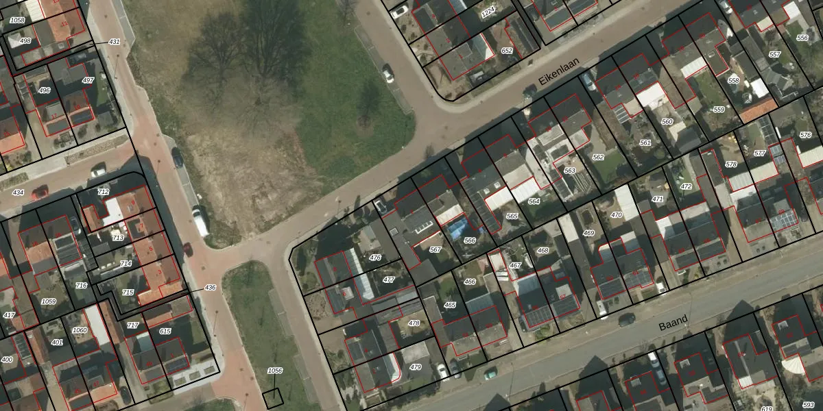 Gebruik de zoekbalk of klik op een perceel voor informatie over de adressen binnen dit perceel.