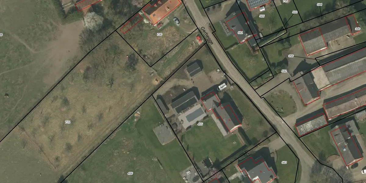 Het perceel waarop Gerhegge 6-b staat heeft een oppervlakte van 2565 m². Dit is een zeer groot perceel. De perceeloppervlakte wordt geregistreerd door het Kadaster. Gedetailleerde informatie over de maten van dit perceel kunt u vinden in het rapport Kadastrale kaart met maatvoering van Gerhegge 6-b.