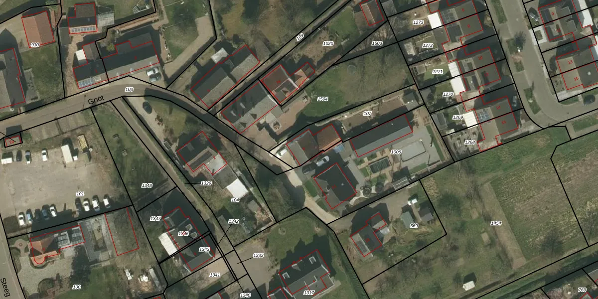 Goot 9 is gelegen op kadastraal perceel NEE00L107. Deze kadastrale aanduiding is uniek en wordt gebruikt door het Kadaster om eigendomsrechten en andere zakelijke rechten vast te leggen. Het perceel maakt onderdeel uit van de kadastrale gemeente Neer.