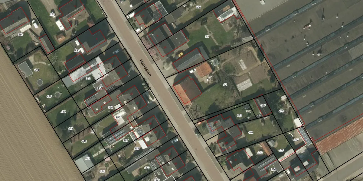 Het perceel waarop Hanssum 13 staat heeft een oppervlakte van 1525 m². Dit is een zeer groot perceel. De perceeloppervlakte wordt geregistreerd door het Kadaster. Gedetailleerde informatie over de maten van dit perceel kunt u vinden in het rapport Kadastrale kaart met maatvoering van Hanssum 13.