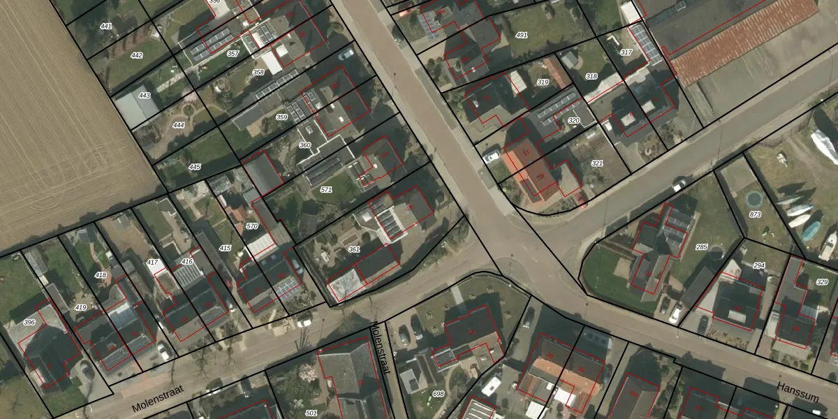 Het perceel waarop Hanssum 26 staat heeft een oppervlakte van 685 m². Dit is een groot perceel. De perceeloppervlakte wordt geregistreerd door het Kadaster. Gedetailleerde informatie over de maten van dit perceel kunt u vinden in het rapport Kadastrale kaart met maatvoering van Hanssum 26.