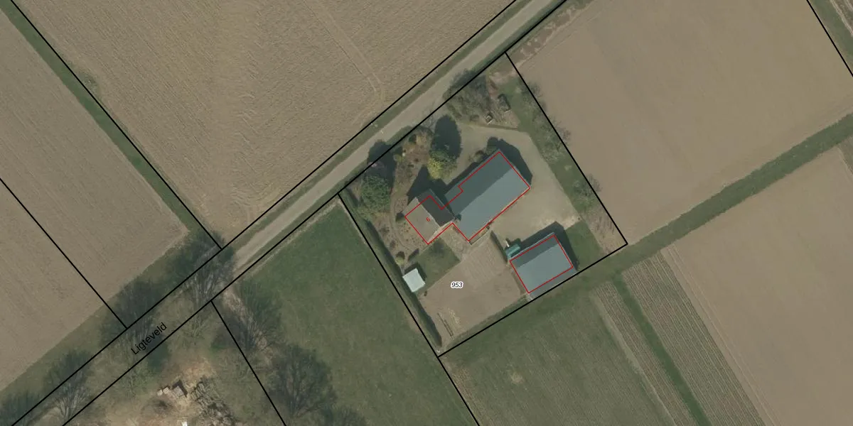 Ligteveld 6 is gelegen op kadastraal perceel NEE00M953. Deze kadastrale aanduiding is uniek en wordt gebruikt door het Kadaster om eigendomsrechten en andere zakelijke rechten vast te leggen. Het perceel maakt onderdeel uit van de kadastrale gemeente Neer.