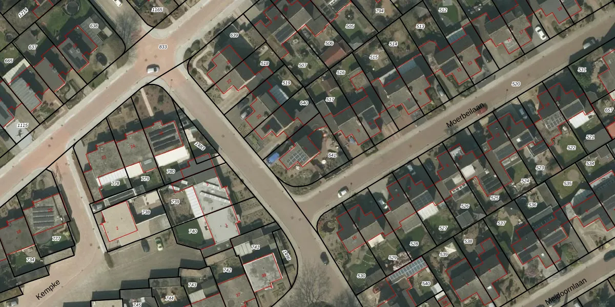 Moerbeilaan 1 is gelegen op kadastraal perceel NEE00L641. Deze kadastrale aanduiding is uniek en wordt gebruikt door het Kadaster om eigendomsrechten en andere zakelijke rechten vast te leggen. Het perceel maakt onderdeel uit van de kadastrale gemeente Neer.