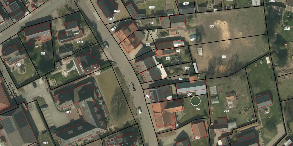 Het perceel waarop Steeg 12-a staat heeft een oppervlakte van 320 m². Dit is een groot perceel. De perceeloppervlakte wordt geregistreerd door het Kadaster. Gedetailleerde informatie over de maten van dit perceel kunt u vinden in het rapport Kadastrale kaart met maatvoering van Steeg 12-a.