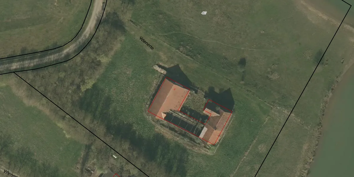 Het perceel waarop Wienerte 2 staat heeft een oppervlakte van 2,2 ha. Dit is een zeer groot perceel. De perceeloppervlakte wordt geregistreerd door het Kadaster. Gedetailleerde informatie over de maten van dit perceel kunt u vinden in het rapport Kadastrale kaart met maatvoering van Wienerte 2.