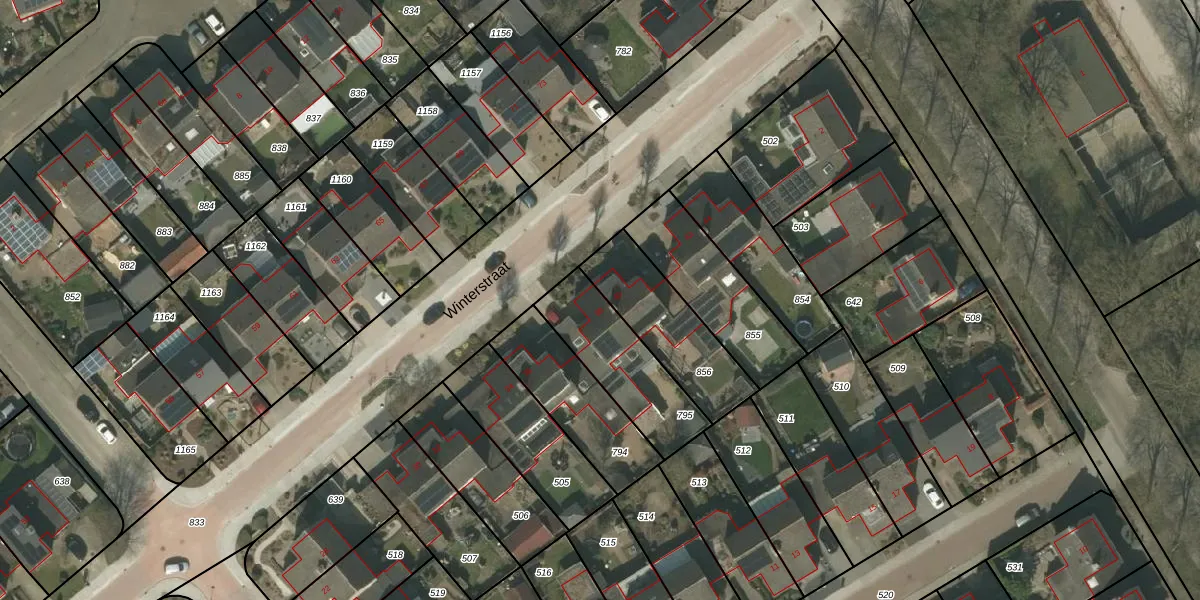 Het perceel waarop Winterstraat 38 staat heeft een oppervlakte van 341 m². Dit is een groot perceel. De perceeloppervlakte wordt geregistreerd door het Kadaster. Gedetailleerde informatie over de maten van dit perceel kunt u vinden in het rapport Kadastrale kaart met maatvoering van Winterstraat 38.