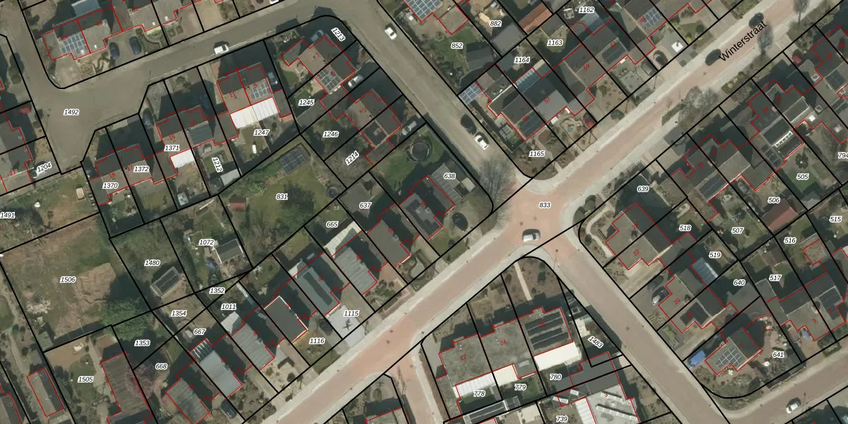 Het perceel waarop Winterstraat 53 staat heeft een oppervlakte van 465 m². Dit is een groot perceel. De perceeloppervlakte wordt geregistreerd door het Kadaster. Gedetailleerde informatie over de maten van dit perceel kunt u vinden in het rapport Kadastrale kaart met maatvoering van Winterstraat 53.