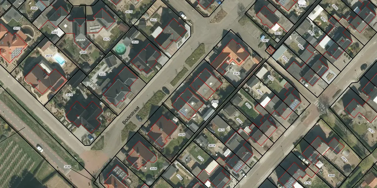 Het perceel waarop Bodestraat 10 staat heeft een oppervlakte van 754 m². Dit is een groot perceel. De perceeloppervlakte wordt geregistreerd door het Kadaster. Gedetailleerde informatie over de maten van dit perceel kunt u vinden in het rapport Kadastrale kaart met maatvoering van Bodestraat 10.