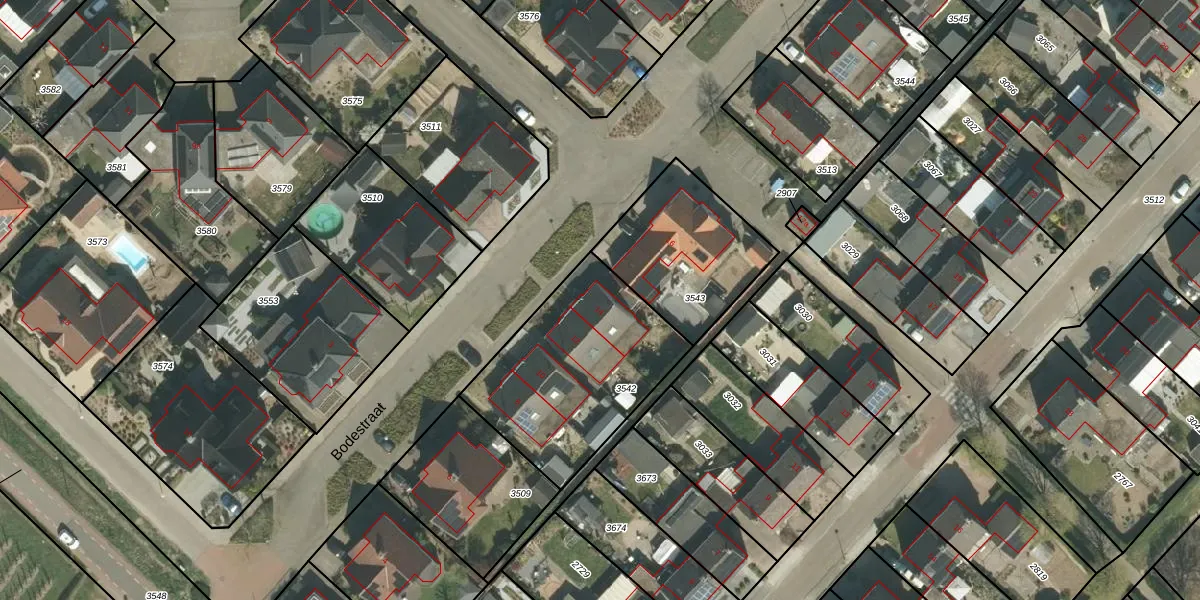 Het perceel waarop Bodestraat 14 staat heeft een oppervlakte van 754 m². Dit is een groot perceel. De perceeloppervlakte wordt geregistreerd door het Kadaster. Gedetailleerde informatie over de maten van dit perceel kunt u vinden in het rapport Kadastrale kaart met maatvoering van Bodestraat 14.