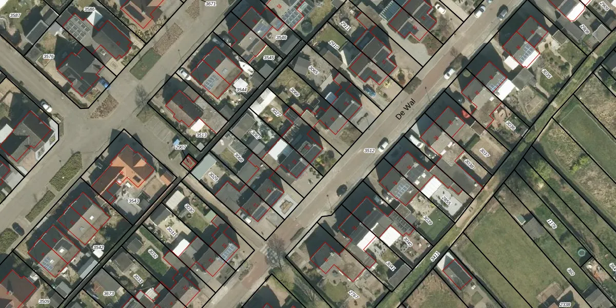 Het perceel waarop De Wal 23 staat heeft een oppervlakte van 310 m². Dit is een groot perceel. De perceeloppervlakte wordt geregistreerd door het Kadaster. Gedetailleerde informatie over de maten van dit perceel kunt u vinden in het rapport Kadastrale kaart met maatvoering van De Wal 23.