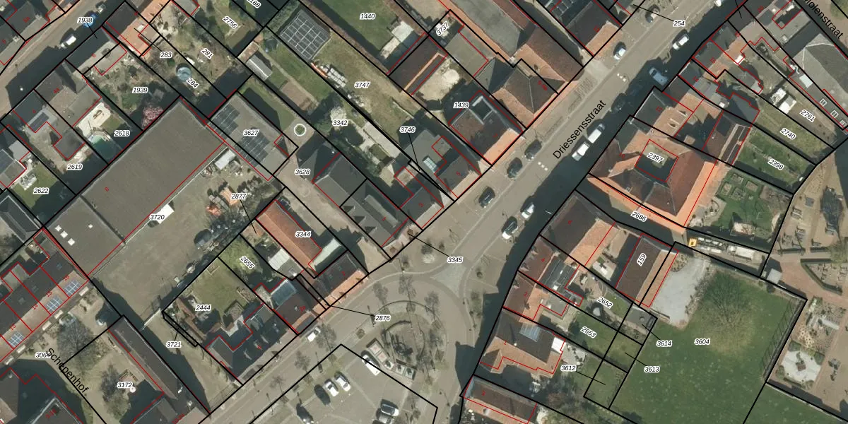 Het perceel waarop Driessensstraat 3 staat heeft een oppervlakte van 605 m². Dit is een groot perceel. De perceeloppervlakte wordt geregistreerd door het Kadaster. Gedetailleerde informatie over de maten van dit perceel kunt u vinden in het rapport Kadastrale kaart met maatvoering van Driessensstraat 3.