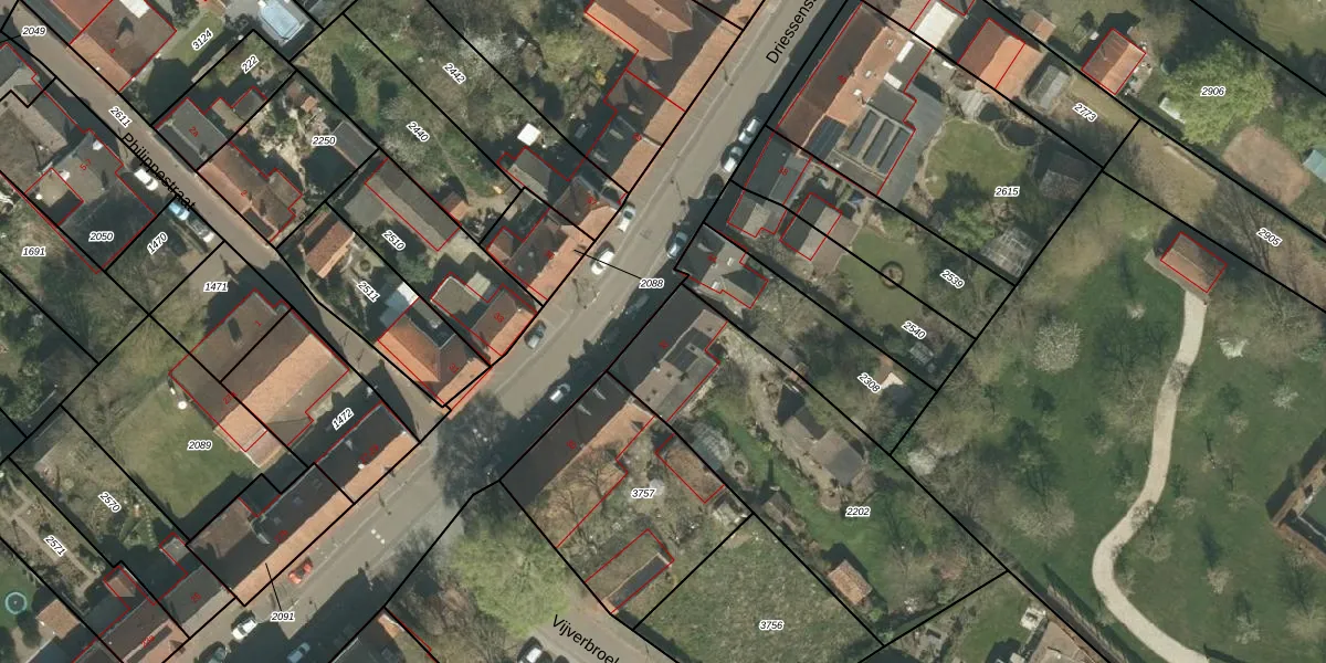 Het perceel waarop Driessensstraat 32 staat heeft een oppervlakte van 1240 m². Dit is een zeer groot perceel. De perceeloppervlakte wordt geregistreerd door het Kadaster. Gedetailleerde informatie over de maten van dit perceel kunt u vinden in het rapport Kadastrale kaart met maatvoering van Driessensstraat 32.