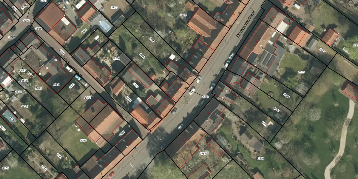 Driessensstraat 35 is gelegen op kadastraal perceel NIT00A2088. Deze kadastrale aanduiding is uniek en wordt gebruikt door het Kadaster om eigendomsrechten en andere zakelijke rechten vast te leggen. Het perceel maakt onderdeel uit van de kadastrale gemeente Neeritter.