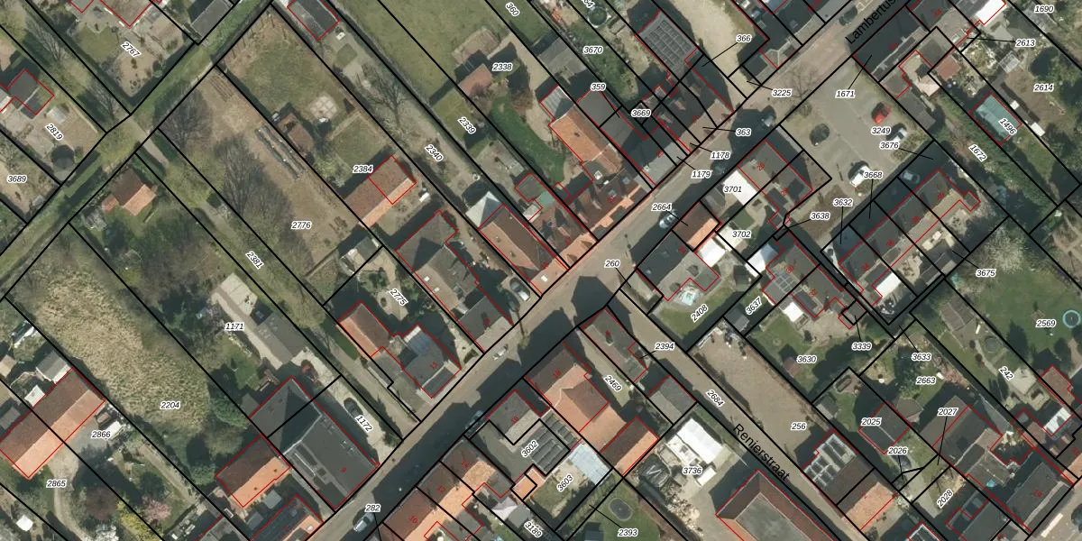 Het perceel waarop Lambertusstraat 15 staat heeft een oppervlakte van 615 m². Dit is een groot perceel. De perceeloppervlakte wordt geregistreerd door het Kadaster. Gedetailleerde informatie over de maten van dit perceel kunt u vinden in het rapport Kadastrale kaart met maatvoering van Lambertusstraat 15.