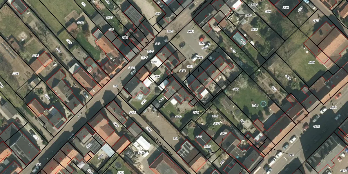 Gebruik de zoekbalk of klik op een perceel voor informatie over de adressen binnen dit perceel.