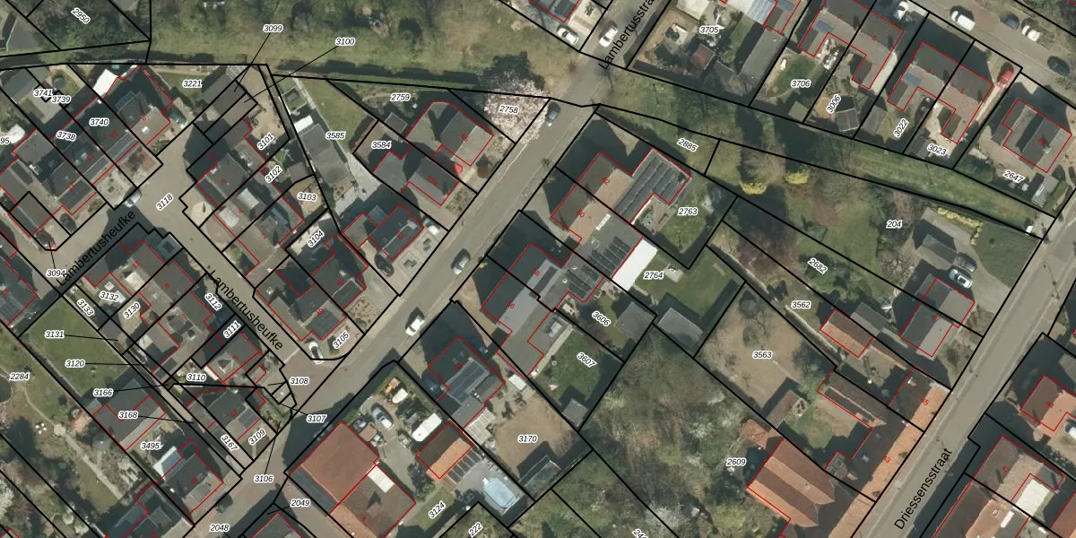 Het perceel waarop Lambertusstraat 58 staat heeft een oppervlakte van 351 m². Dit is een groot perceel. De perceeloppervlakte wordt geregistreerd door het Kadaster. Gedetailleerde informatie over de maten van dit perceel kunt u vinden in het rapport Kadastrale kaart met maatvoering van Lambertusstraat 58.
