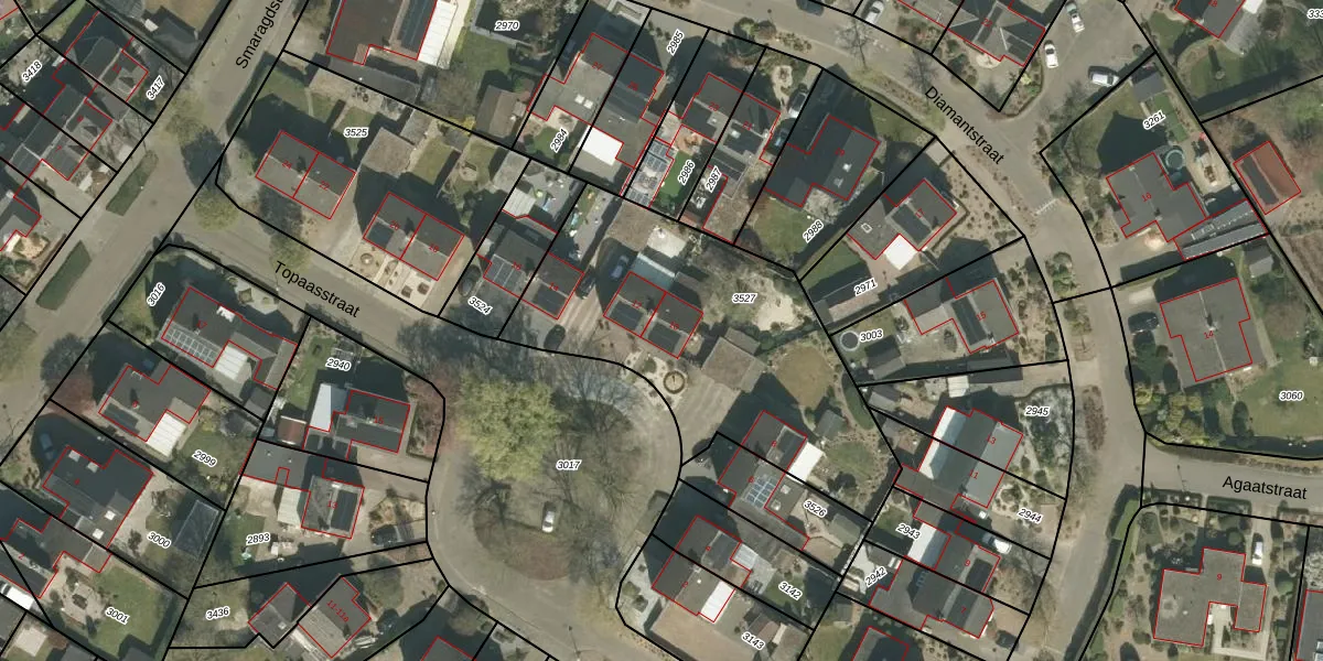 Topaasstraat 10 is gelegen op kadastraal perceel NIT00A3527. Deze kadastrale aanduiding is uniek en wordt gebruikt door het Kadaster om eigendomsrechten en andere zakelijke rechten vast te leggen. Het perceel maakt onderdeel uit van de kadastrale gemeente Neeritter.