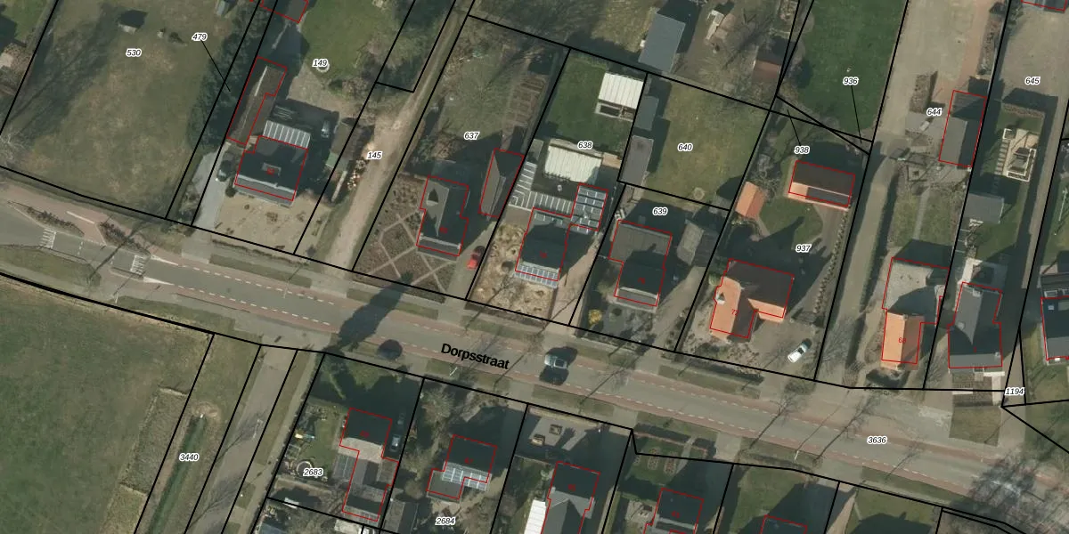 Het perceel waarop Dorpsstraat 78 staat heeft een oppervlakte van 915 m². Dit is een groot perceel. De perceeloppervlakte wordt geregistreerd door het Kadaster. Gedetailleerde informatie over de maten van dit perceel kunt u vinden in het rapport Kadastrale kaart met maatvoering van Dorpsstraat 78.