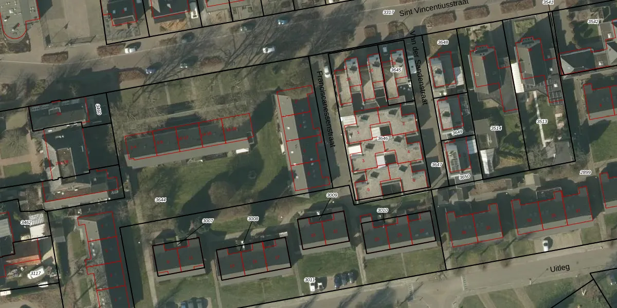 Het perceel waarop Franciscanessenstraat 6 staat heeft een oppervlakte van 3930 m². Dit is een zeer groot perceel. De perceeloppervlakte wordt geregistreerd door het Kadaster. Gedetailleerde informatie over de maten van dit perceel kunt u vinden in het rapport Kadastrale kaart met maatvoering van Franciscanessenstraat 6.
