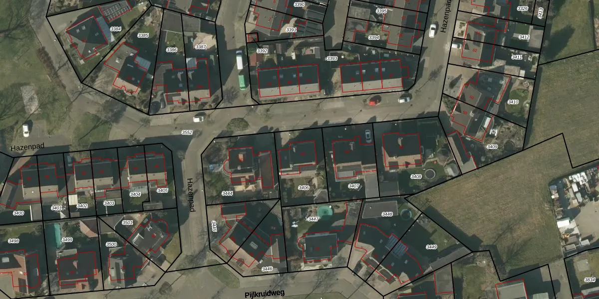 Het perceel waarop Hazenpad 52 staat heeft een oppervlakte van 401 m². Dit is een groot perceel. De perceeloppervlakte wordt geregistreerd door het Kadaster. Gedetailleerde informatie over de maten van dit perceel kunt u vinden in het rapport Kadastrale kaart met maatvoering van Hazenpad 52.