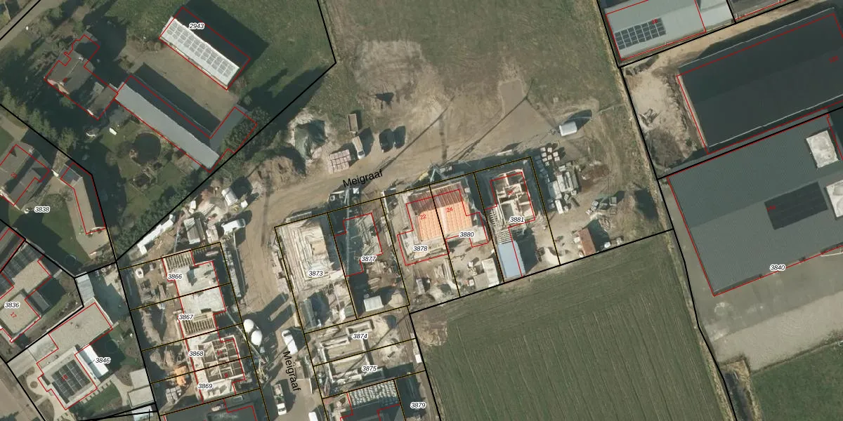 Meigraaf 22 is gelegen op kadastraal perceel DNE00I3878. Deze kadastrale aanduiding is uniek en wordt gebruikt door het Kadaster om eigendomsrechten en andere zakelijke rechten vast te leggen. Het perceel maakt onderdeel uit van de kadastrale gemeente Deurne.