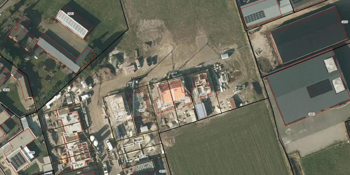 Meigraaf 24 is gelegen op kadastraal perceel DNE00I3880. Deze kadastrale aanduiding is uniek en wordt gebruikt door het Kadaster om eigendomsrechten en andere zakelijke rechten vast te leggen. Het perceel maakt onderdeel uit van de kadastrale gemeente Deurne.