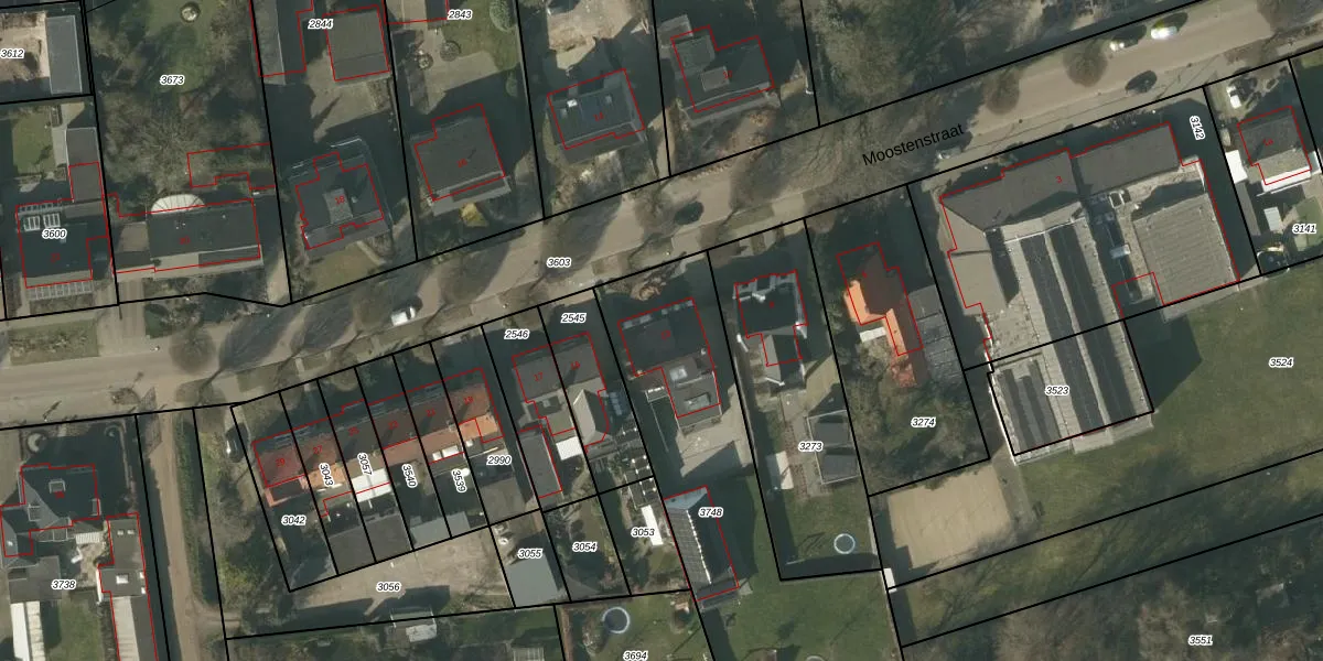 Moostenstraat 13 is gelegen op kadastraal perceel DNE00I3748. Deze kadastrale aanduiding is uniek en wordt gebruikt door het Kadaster om eigendomsrechten en andere zakelijke rechten vast te leggen. Het perceel maakt onderdeel uit van de kadastrale gemeente Deurne.