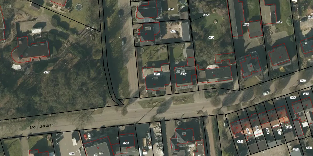 Moostenstraat 24 is gelegen op kadastraal perceel DNE00I3601. Deze kadastrale aanduiding is uniek en wordt gebruikt door het Kadaster om eigendomsrechten en andere zakelijke rechten vast te leggen. Het perceel maakt onderdeel uit van de kadastrale gemeente Deurne.