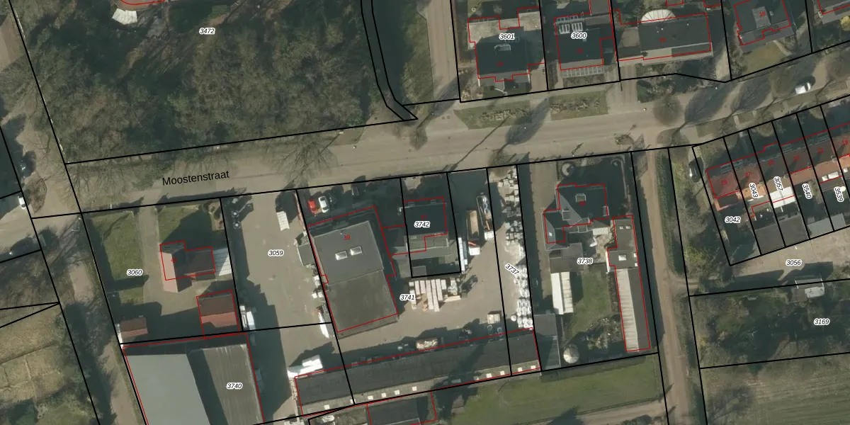 Moostenstraat 37 is gelegen op kadastraal perceel DNE00I3742. Deze kadastrale aanduiding is uniek en wordt gebruikt door het Kadaster om eigendomsrechten en andere zakelijke rechten vast te leggen. Het perceel maakt onderdeel uit van de kadastrale gemeente Deurne.