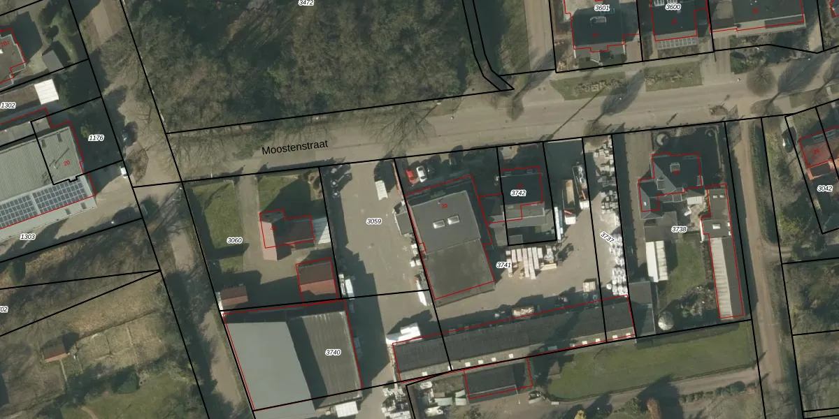 Het perceel waarop Moostenstraat 39 staat heeft een oppervlakte van 1830 m². Dit is een zeer groot perceel. De perceeloppervlakte wordt geregistreerd door het Kadaster. Gedetailleerde informatie over de maten van dit perceel kunt u vinden in het rapport Kadastrale kaart met maatvoering van Moostenstraat 39.