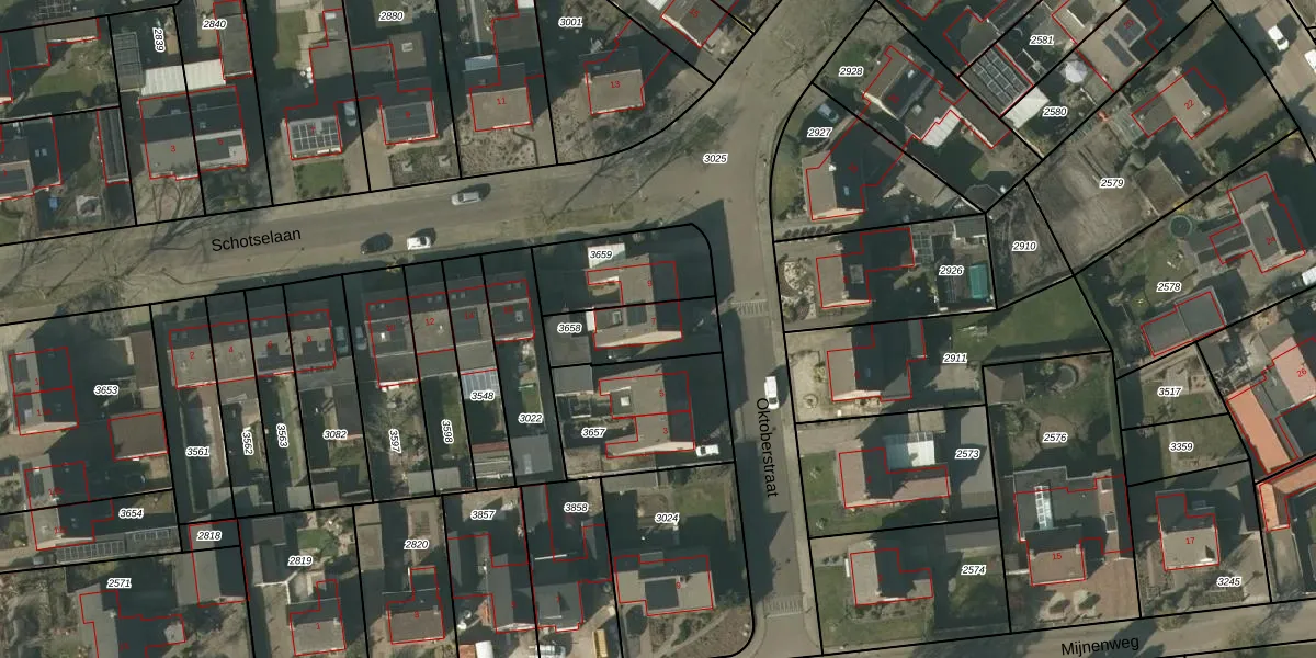 Het perceel waarop Oktoberstraat 7 staat heeft een oppervlakte van 225 m². Dit is een middelgroot perceel. De perceeloppervlakte wordt geregistreerd door het Kadaster. Gedetailleerde informatie over de maten van dit perceel kunt u vinden in het rapport Kadastrale kaart met maatvoering van Oktoberstraat 7.