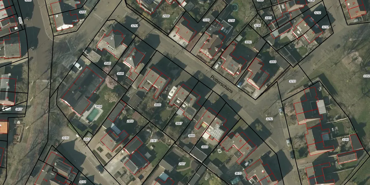 Het perceel waarop Potterschans 6 staat heeft een oppervlakte van 935 m². Dit is een groot perceel. De perceeloppervlakte wordt geregistreerd door het Kadaster. Gedetailleerde informatie over de maten van dit perceel kunt u vinden in het rapport Kadastrale kaart met maatvoering van Potterschans 6.