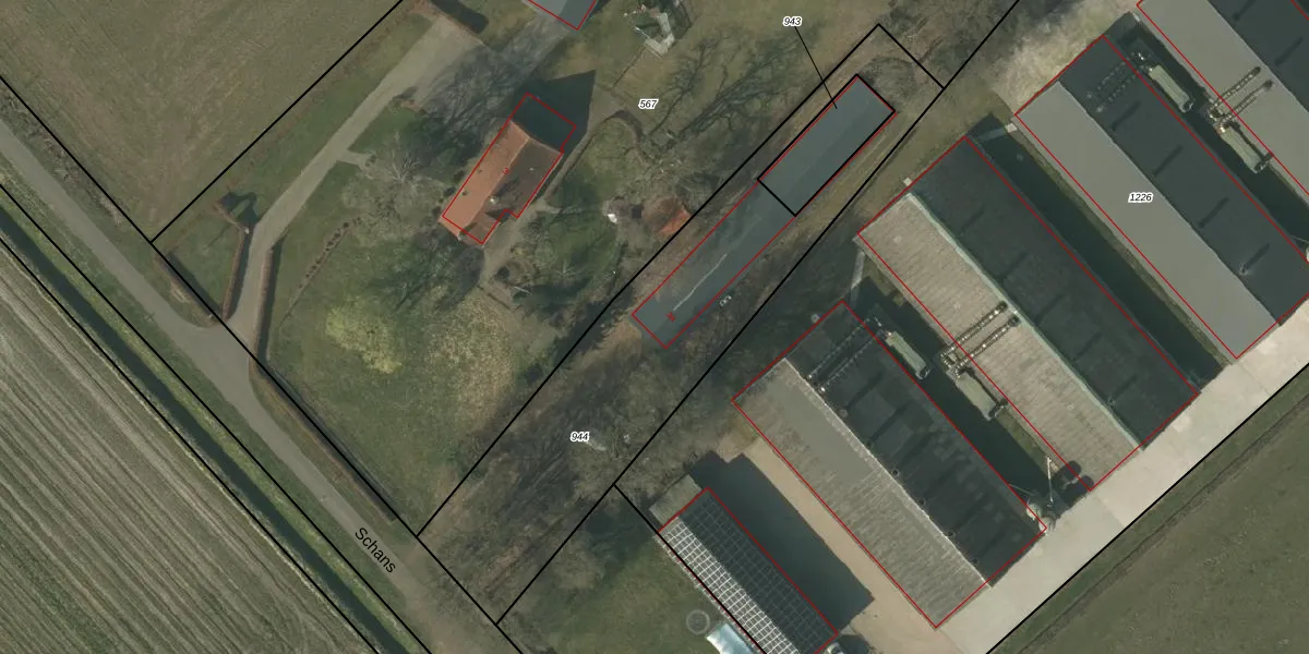 Het perceel waarop Schans 3-a staat heeft een oppervlakte van 1636 m². Dit is een zeer groot perceel. De perceeloppervlakte wordt geregistreerd door het Kadaster. Gedetailleerde informatie over de maten van dit perceel kunt u vinden in het rapport Kadastrale kaart met maatvoering van Schans 3-a.