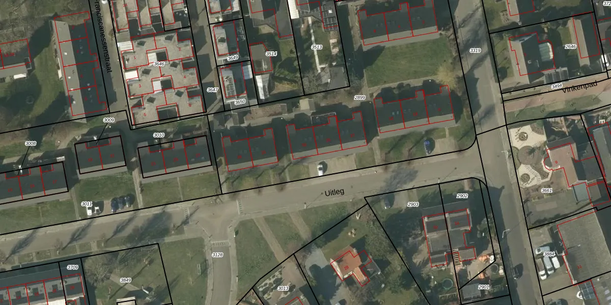 Het perceel waarop Uitleg 33 staat heeft een oppervlakte van 3345 m². Dit is een zeer groot perceel. De perceeloppervlakte wordt geregistreerd door het Kadaster. Gedetailleerde informatie over de maten van dit perceel kunt u vinden in het rapport Kadastrale kaart met maatvoering van Uitleg 33.