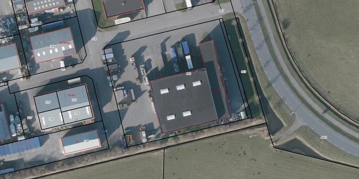 Het adres is gelegen op perceel 849 in de sectie F en de kadastrale gemeente Nes Ameland. De kadastrale aanduiding is aldus NES01-F-849. De gemiddelde perceelgrootte in Nes Ameland is 7,0 ha. Dit perceel is kleiner: de perceeloppervlakte bedraagt 3920 m². Het kleinste perceel in de kadastrale gemeente is 1 m² groot. De grootste perceeloppervlakte is 58,73 km². Op het perceel zijn 4 adressen aanwezig. De huidige grenzen van het perceel zijn digitaal in de Basisregistratie Kadaster (BRK) geregistreerd op 27-08-2018.
