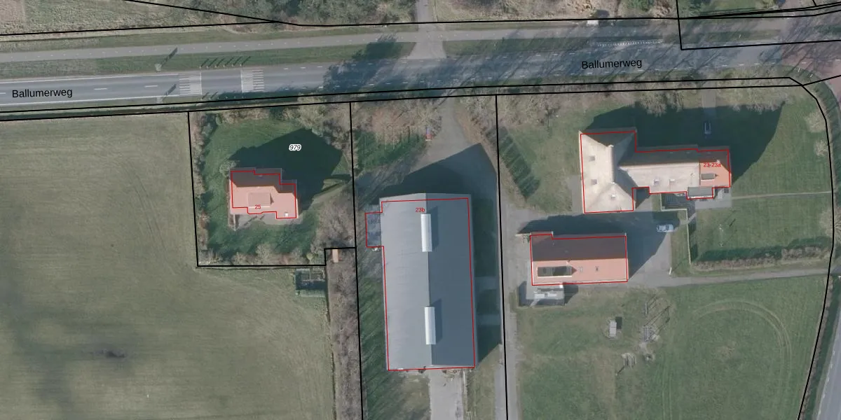 Het perceel waarop Ballumerweg 23-b staat heeft een oppervlakte van 4355 m². Dit is een zeer groot perceel. De perceeloppervlakte wordt geregistreerd door het Kadaster. Gedetailleerde informatie over de maten van dit perceel kunt u vinden in het rapport Kadastrale kaart met maatvoering van Ballumerweg 23-b.
