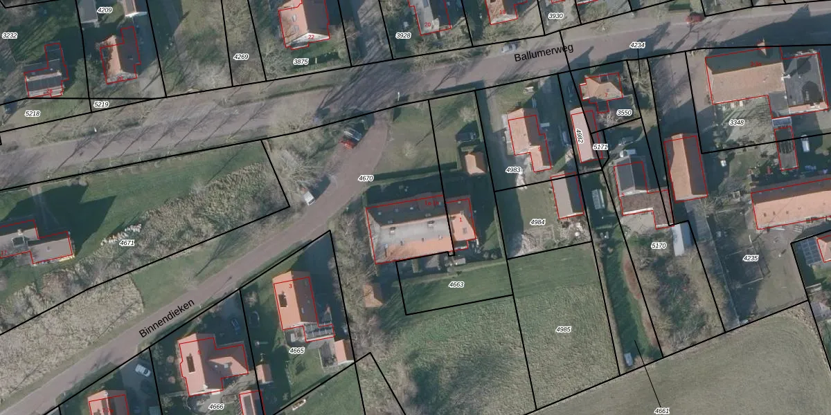 Het perceel waarop Binnendieken 1-b staat heeft een oppervlakte van 4360 m². Dit is een zeer groot perceel. De perceeloppervlakte wordt geregistreerd door het Kadaster. Gedetailleerde informatie over de maten van dit perceel kunt u vinden in het rapport Kadastrale kaart met maatvoering van Binnendieken 1-b.