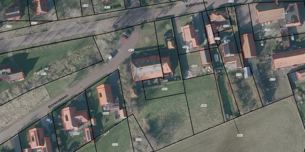 Het perceel waarop Binnendieken 1-g staat heeft een oppervlakte van 4360 m². Dit is een zeer groot perceel. De perceeloppervlakte wordt geregistreerd door het Kadaster. Gedetailleerde informatie over de maten van dit perceel kunt u vinden in het rapport Kadastrale kaart met maatvoering van Binnendieken 1-g.