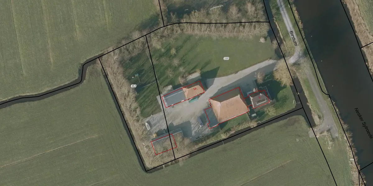 Het perceel waarop Birstum 5-A staat heeft een oppervlakte van 4275 m². Dit is een zeer groot perceel. De perceeloppervlakte wordt geregistreerd door het Kadaster. Gedetailleerde informatie over de maten van dit perceel kunt u vinden in het rapport Kadastrale kaart met maatvoering van Birstum 5-A.