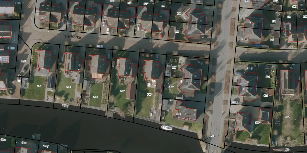 Het perceel waarop De Harke 1 staat heeft een oppervlakte van 837 m². Dit is een groot perceel. De perceeloppervlakte wordt geregistreerd door het Kadaster. Gedetailleerde informatie over de maten van dit perceel kunt u vinden in het rapport Kadastrale kaart met maatvoering van De Harke 1.