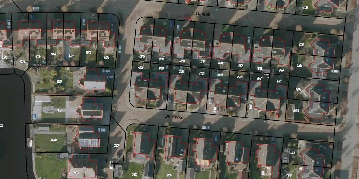 Het perceel waarop De Harke 12 staat heeft een oppervlakte van 283 m². Dit is een middelgroot perceel. De perceeloppervlakte wordt geregistreerd door het Kadaster. Gedetailleerde informatie over de maten van dit perceel kunt u vinden in het rapport Kadastrale kaart met maatvoering van De Harke 12.
