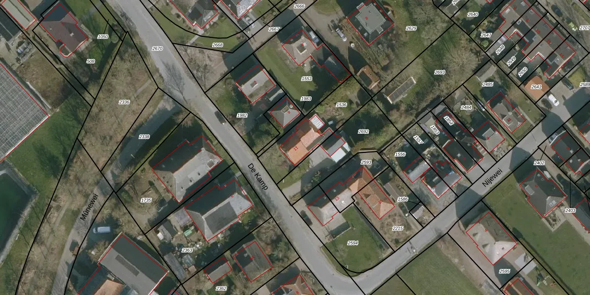 Het perceel waarop De Kamp 11 staat heeft een oppervlakte van 462 m². Dit is een groot perceel. De perceeloppervlakte wordt geregistreerd door het Kadaster. Gedetailleerde informatie over de maten van dit perceel kunt u vinden in het rapport Kadastrale kaart met maatvoering van De Kamp 11.