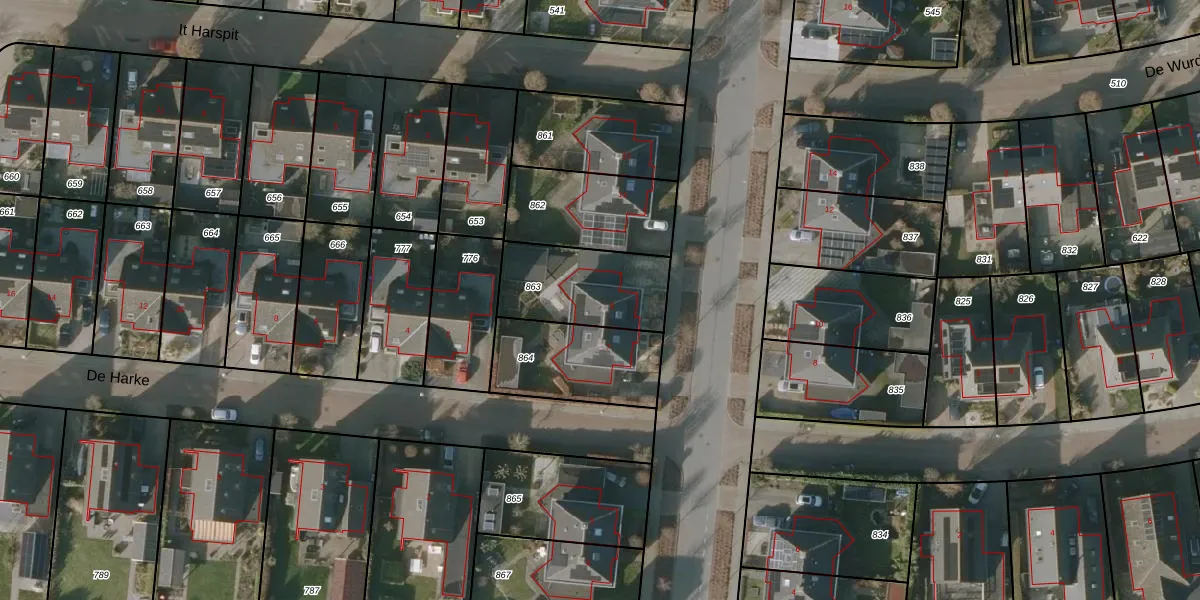 Het adres ligt op het perceel AKM02-D-863, dat zich in de kadastrale gemeente Akkrum bevindt. Het perceel is 355 m² groot. Dat is kleiner dan de gemiddelde perceeloppervlakte in Akkrum, dat op 5689,55 m² ligt. Het grootste perceel in de kadastrale gemeente is 16,9 ha. Het kleinste perceel heeft een oppervlakte van 0 m². Er zijn geen andere adressen aanwezig op het perceel. In de Basisregistratie Kadaster (BRK) werden de grenzen van het perceel geregistreerd op 06-12-2005.